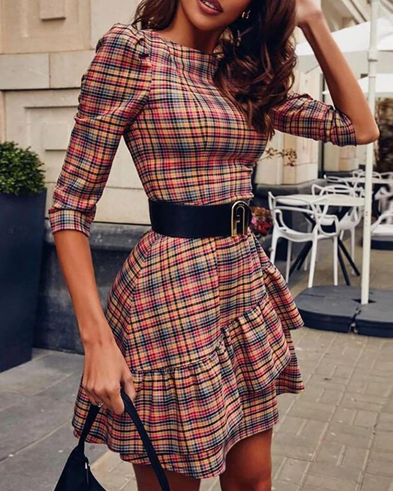 2021 Spring Diagonal Hem Plaid Mini Dress Party Vestidos Red Plaid Dress Half Sleeve Scottish Plaid Slim Dress Dresses Aliexpress